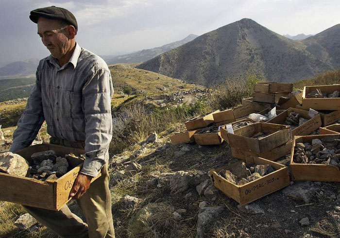 1.酸性土壤中的锈蚀机理分析 古铜钱埋在酸性土壤中的锈蚀机理分析:古铜钱长期埋在酸性(PH4-7)土壤中的锈蚀颜色一般呈绿色(颜色由苹果绿--淡绿--中绿--深绿--橄榄绿逐渐进变化0,并产生碱式碳酸铜[CuCO3.3Cu(OH)3]呈淡绿色,有时还会产生碱式硫酸铜[CuSO4.3Cu(OH)2],呈橄榄绿色,并在钱表面形成稳定的保护膜。由于锈蚀的厚度不同,锈的化学成份不同,含量多少也不同,因此便会形成各种深浅不同的绿色。俗称松绿、瓜皮绿、纯绿、绿漆古、靛兰绿等。这类锈蚀往往是全面腐蚀和局部腐蚀的综合产物,同时还会产生电化学腐蚀。故钱面会呈斑状、槽状及坑眼,又因有晶间腐蚀和选择腐蚀,铜钱内部的锡、铅等易腐部份腐蚀掉,而使铜钱的比重减小就变轻了,并产生微细的小针眼,使钱声变哑,绿锈从孔中产生,俗称“入骨锈”。 2.碱性土壤中的锈蚀机理分析 古铜钱埋在碱性土壤中的锈蚀机理分析:古铜钱一般在民间使用流通数十年甚至数百年之久。就会锈蚀产生碱式硫酸铜,后又埋在碱性土壤中(PH7-10)与还原类物质如有机物糖类发生化学反应而生成氧化亚铜Cu2O呈深红色,还会生成铅丹Pb3O4呈大红色。欲称朱砂锈,鸡血斑,枣皮红,黄斑等。同时还保留部分碱式硫酸铜,故保存部分绿锈,所以古铜钱呈红绿锈。同时也会产生局部腐蚀及电化学腐蚀,所形成的微小针眼中也有红绿锈产生,欲称入骨锈。由上述可知古铜钱必须先产生绿锈后才会还原而生成红锈。故是红锈盖绿锈。在沙中则形成“干沙锈”即绿中有沙并有黄、红斑。 3.中性土壤中的锈蚀机理分析 古铜钱长期埋在中性土壤中(PH7)一般不会生锈,但有些古铜钱的含锡量偏高,若锡在15-32%时,从“铜一锡系状态图”分析,形成a固溶晶体和 共析体组成.而其中的 相(Cu3Sn)及SN,因锡析出到钱表面形成所谓“水银光”又称“水银浸”。同时锡青铜还会有“逆偏析”趋向,即锡由内外析出,使铜钱表面呈“白斑’又称之为“锡汗”。当含锡量在10-305时还会产生二氧化锡(SnO2)呈银灰色.这些现象也会同时产生,或分别产生,都会使铜钱表面形成“水银光”。因中性土壤极不稳定,很容易改变成为酸性或碱性土壤,故有些古铜钱先形成少量的红绿锈后再产生“水银光”。 |